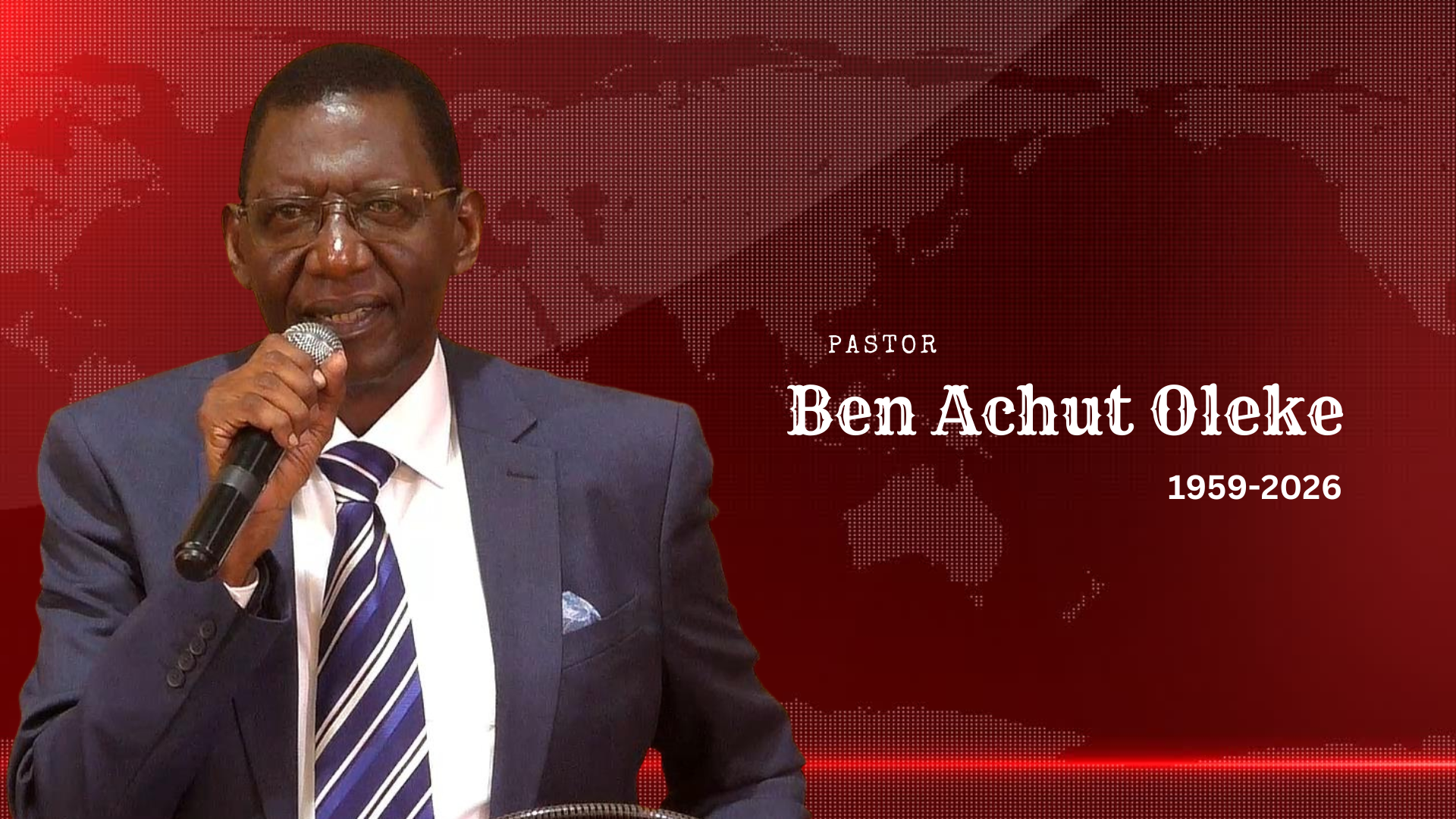 Born in 1959, Pastor Benard Oleke Achut received his summons from our Lord Jesus Christ today February, 26 2026 at 1.00PM local time following an illness of more than two months and consequent complications that resulted in multi-organ failure. He had received acute and critical care for the past month. Throughout his hospitalization, he was surrounded by prayer, faith, and unwavering support from his family, church, and friends alike.